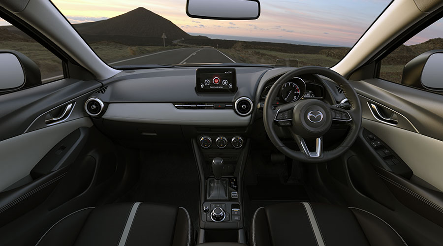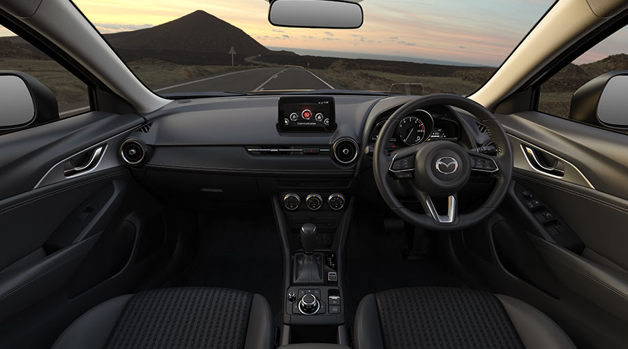 Di bagian interior, New Mazda CX-3 tipe SPORT 1.5L mendapatkan paduan bahan kulit sintetis dan fabric yang membuatnya tampil lebih sporty. Selain itu, pada New Mazda CX-3 SPORT 1.5L ini juga mendapatkan teknologi kursi 7-G Mazda terbaru, dimana strukturnya mampu menopang tubuh pengemudi dan penumpang dengan lebih baik untuk memberikan kenyamanan saat berkendara.